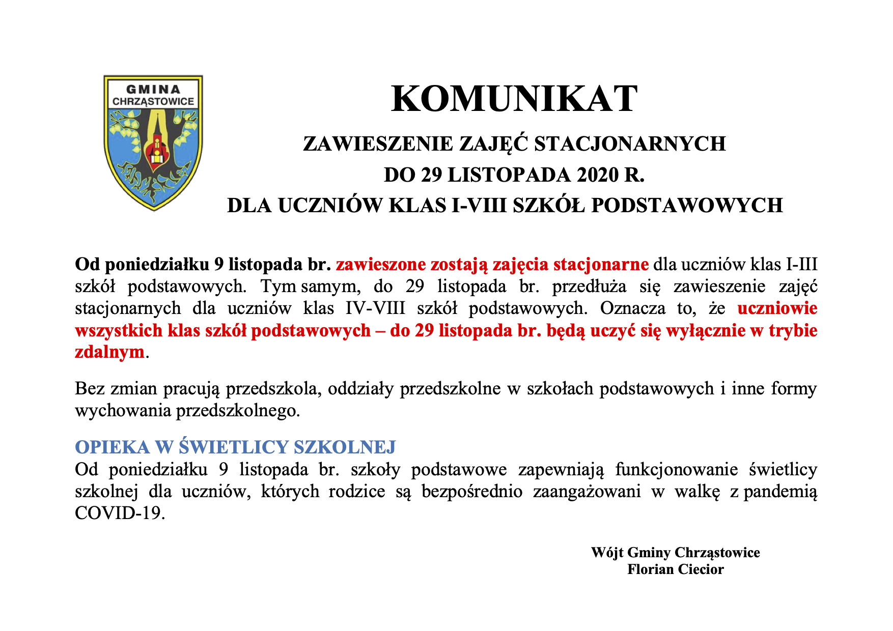 • Komunikat Wójta w sprawie zawieszenia zajęć