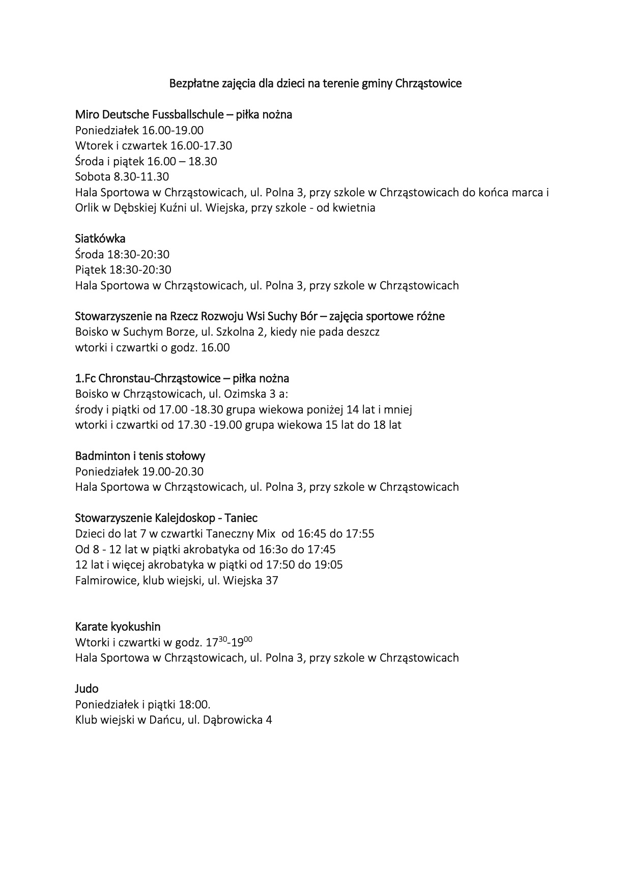 • Bezpłatne zajęcia dla dzieci na terenie Gminy Chrząstowice