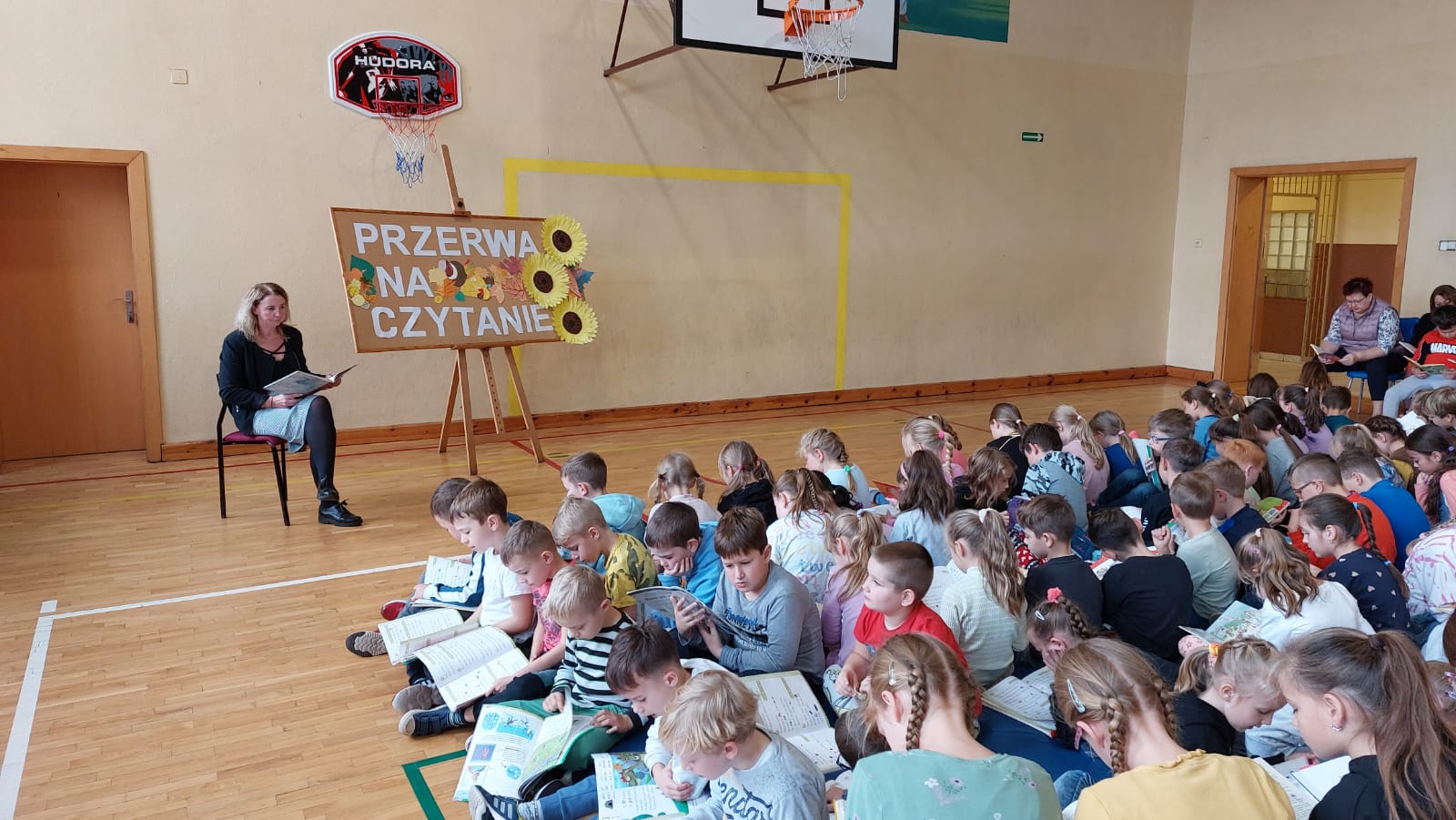 W poniedziałek ( 24.10) Dyrekcja, nauczyciele i uczniowie brali udział w „Przerwie na Czytanie”- biciu rekordu w czytaniu na przerwie. Łącznie czytało 196 osób z naszej szkoły. Mamy nadzieję, że rekord zostanie pobity. W zeszłym roku wyniósł on – 377 tysięcy 586 osób czytających na przerwie. Więcej informacji pod linkiem: czytanie