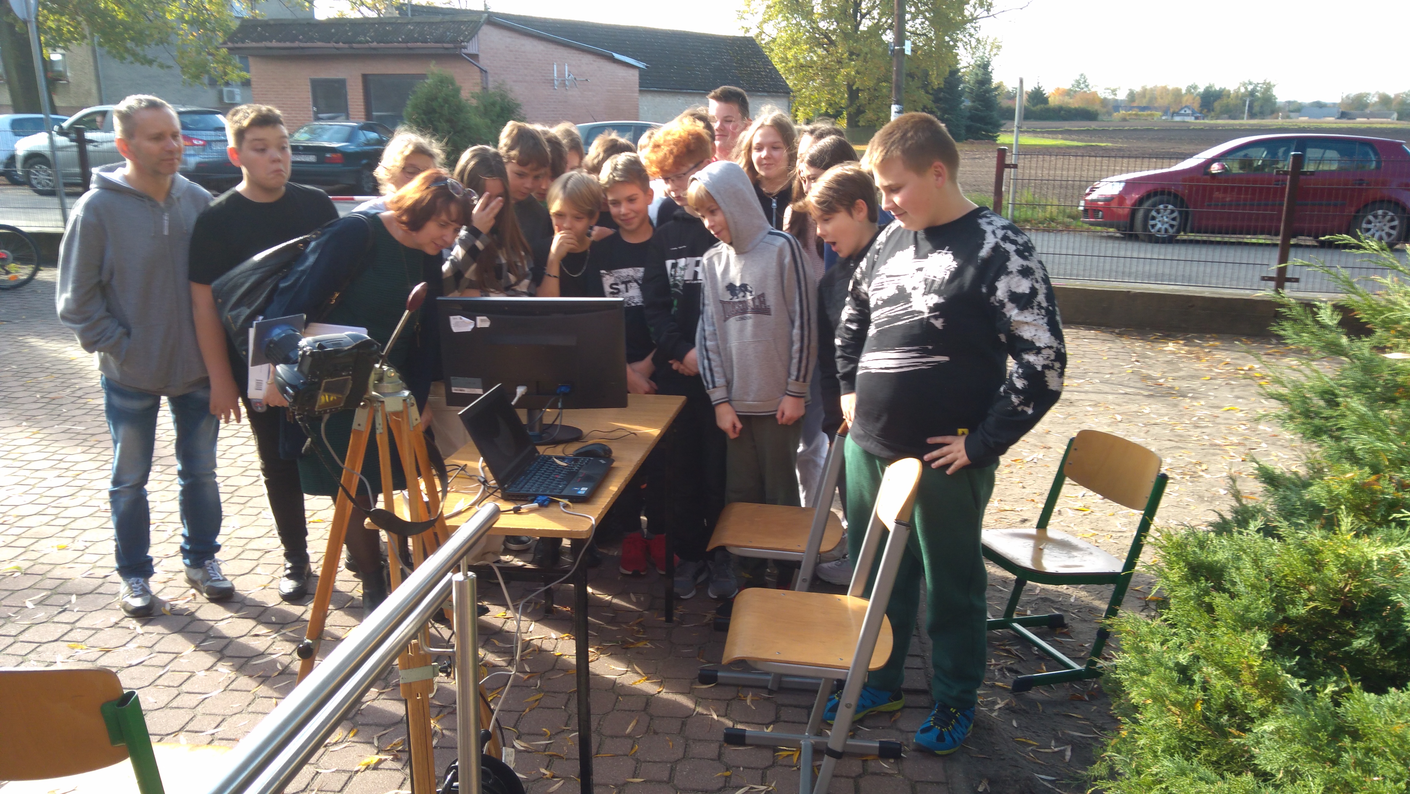 Przed wejściem do szkoły ustawione zostało stanowisko do obserwacji zjawiska astronomicznego. Obraz był przechwytywany przez aparat cyfrowy z teleobiektywem i transmitowany do komputera, dzięki czemu każdy zainteresowany mógł bezpiecznie zaobserwować powolne zakrywanie Słońca przez Księżyc na dodatkowym wielkoformatowym monitorze. Uczniowie z wielkim zainteresowaniem uczestniczyli w tym wydarzeniu. Stanowisko było dostępne dla wszystkich, także dla rodziców, którzy podczas zaćmienia znaleźli się w naszej szkole. Kolejne częściowe zaćmienie Słońca widoczne w Polsce już za trzy lata. Stanowisko do obserwacji zostało przygotowane przez nauczyciela informatyki Władysława Bilińskiego, miłośnika astronomii.