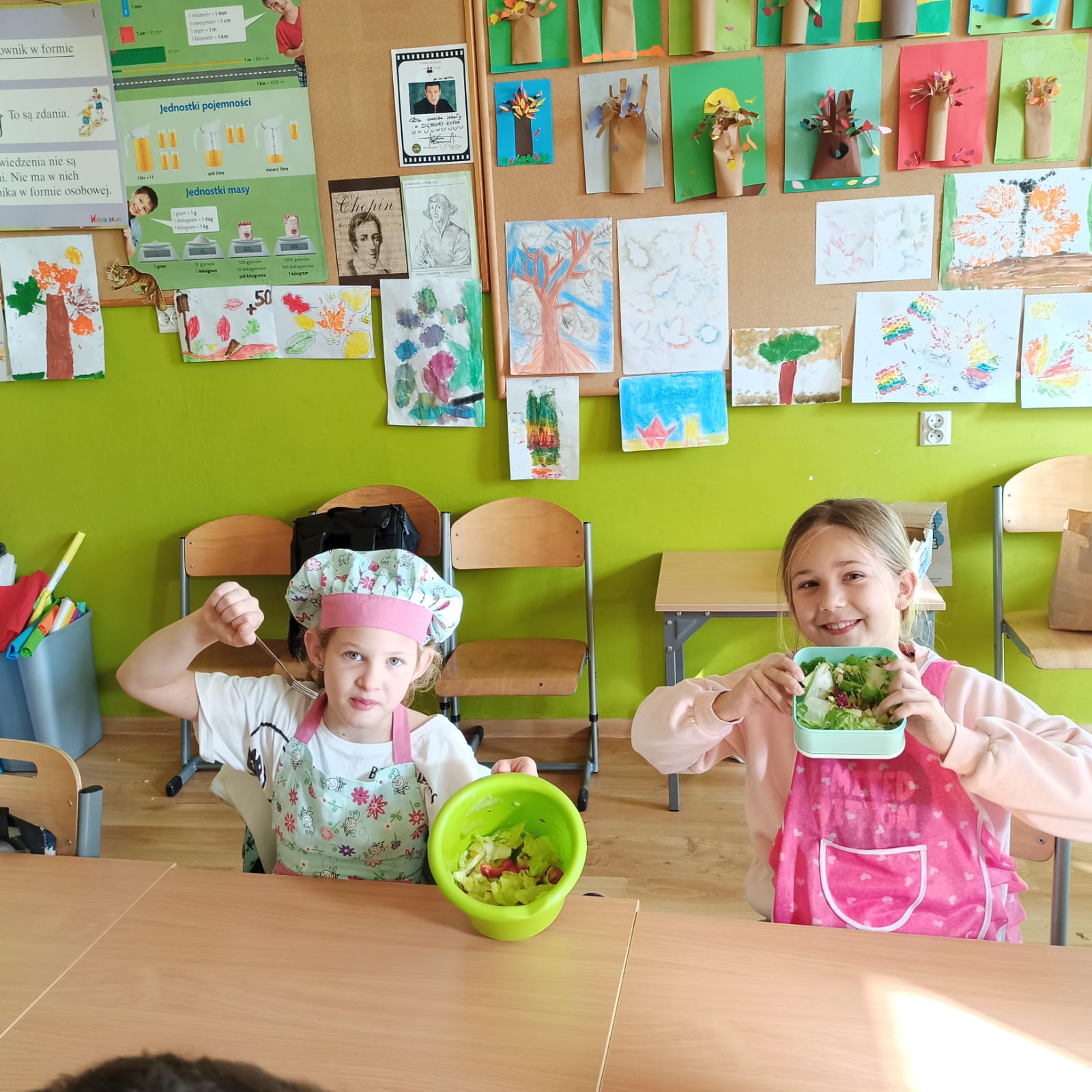 Dziś w naszej szkole obchodzony był Europejski Dzień Zdrowego Jedzenia i Gotowania. Dzieci z wszystkich klas obejrzały filmik o piramidzie żywienia I dowiedziały się jak z niej korzystać na co dzień. W klasach 5-8 uczniowie brali udział w quizie na ten temat oraz liczyli swoje BMI. Dla klas młodszych również zorganizowano quizy, a także zabawy o zdrowym żywieniu. Podczas lekcji wf-u uczniowie przygotowywali kolorowe kanapki oraz sałatki pełne witamin :) Na koniec dzieci otrzymały nagrody w postaci zdrowych batonów i owoców, a także drobne upominki.